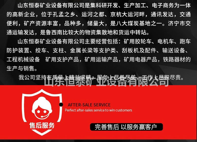 歡迎瀏覽山東恒泰礦業設備有限公司官方網站!主營:跑車防護裝置、膠輪車、電機車、耙斗機、人車、鐵路擋車器、道口板、枕木等