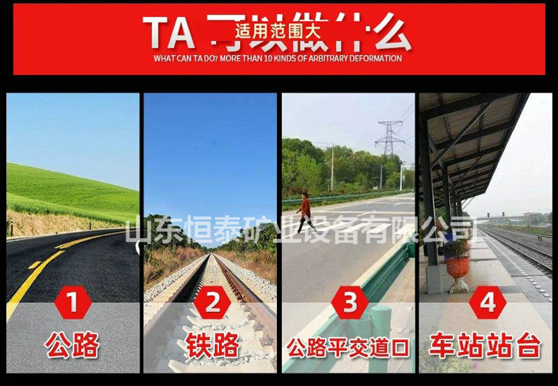 3、型號齊全:適用于P43Kg、P50Kg、P60Kg等各種鋼軌適用 以及木枕、混凝土枕等各種枕木的鋪設 并在1.1延長米/組的基礎上開發研制出1.65延長米/組和2.2延長米/組的T/TD—Ⅳ型嵌絲橡膠道口板。