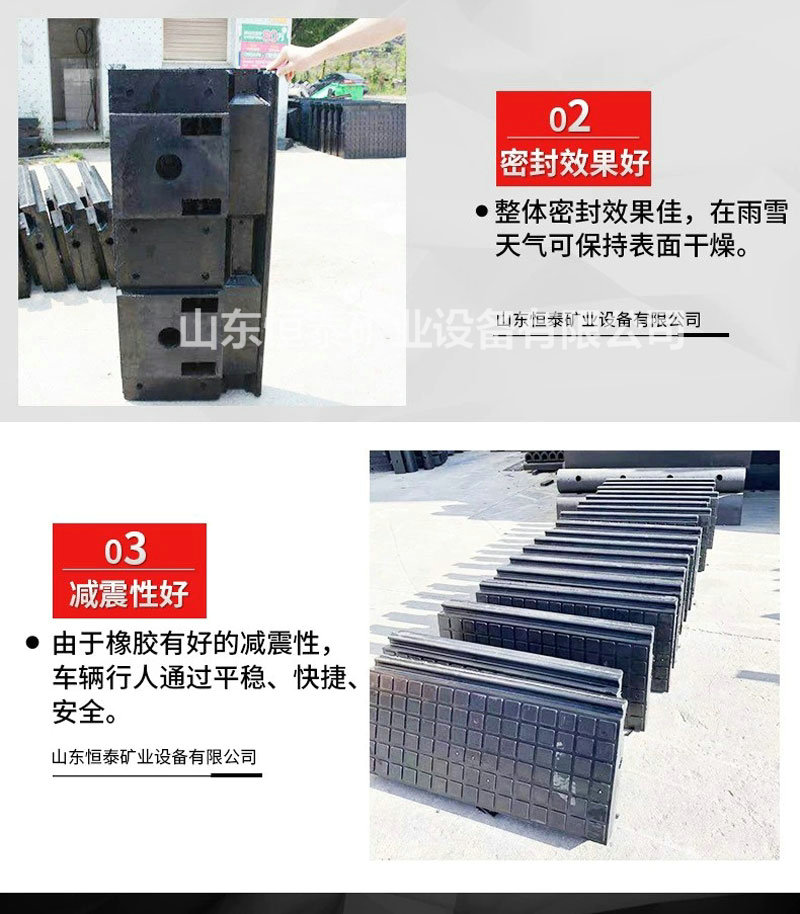 橡膠道口板采用先進技術并添加經緯線嵌線合成,橡膠表面耐磨,耐腐蝕可免除日常的維護和修理,標準化設計制造,質量更可靠。