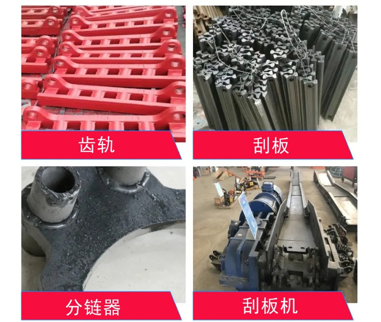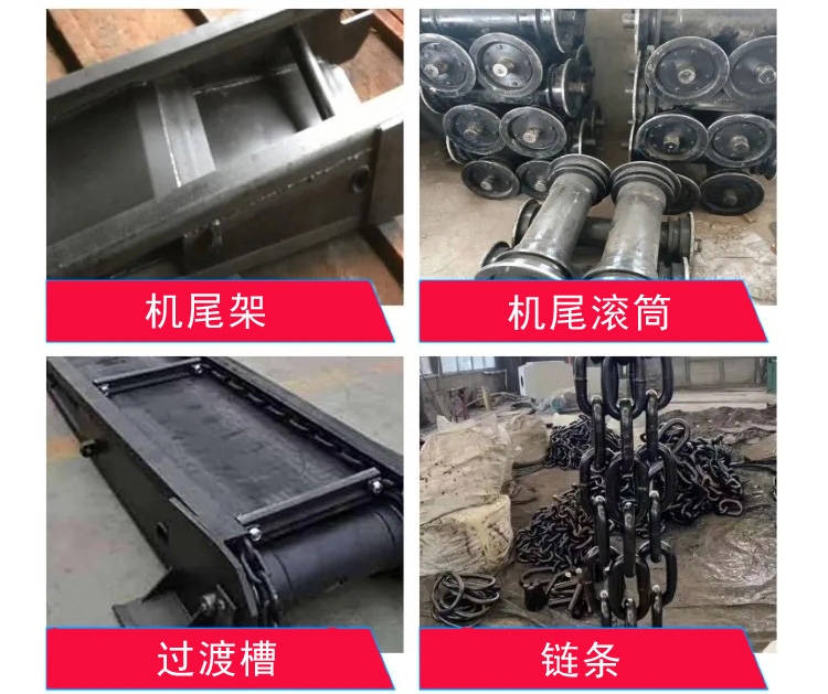 刮板輸送機是用刮板鏈牽引,在槽內運送散料的輸送機,型號有SGB420/30T;SGB420/40TX;SGB420/40T;SGB620/40T;其他名稱:溜子;煤溜子;電溜子。配件包含鏈條/中部槽/開口環/刮板/鋸齒環/機頭架/鏈輪/JS減速機/機尾架等